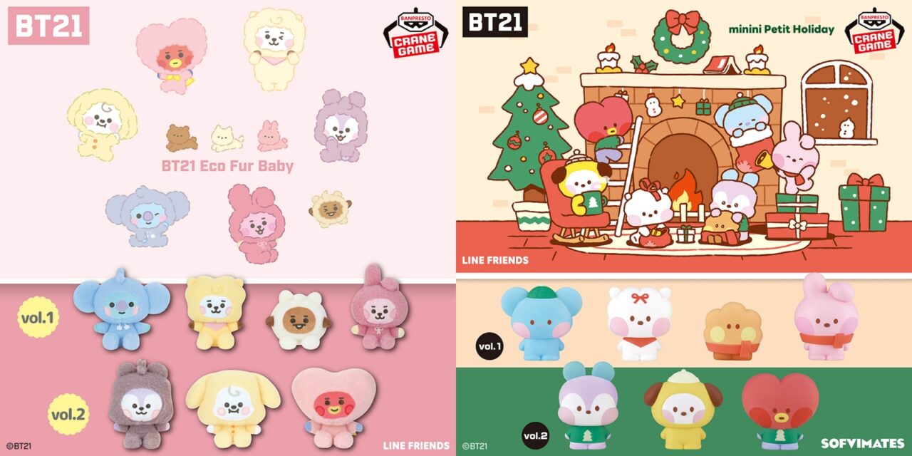『BT21』から展開されるプライズフィギュアや、プライズ景品のぬいぐるみ・グッズなどの最新情報を掲載。