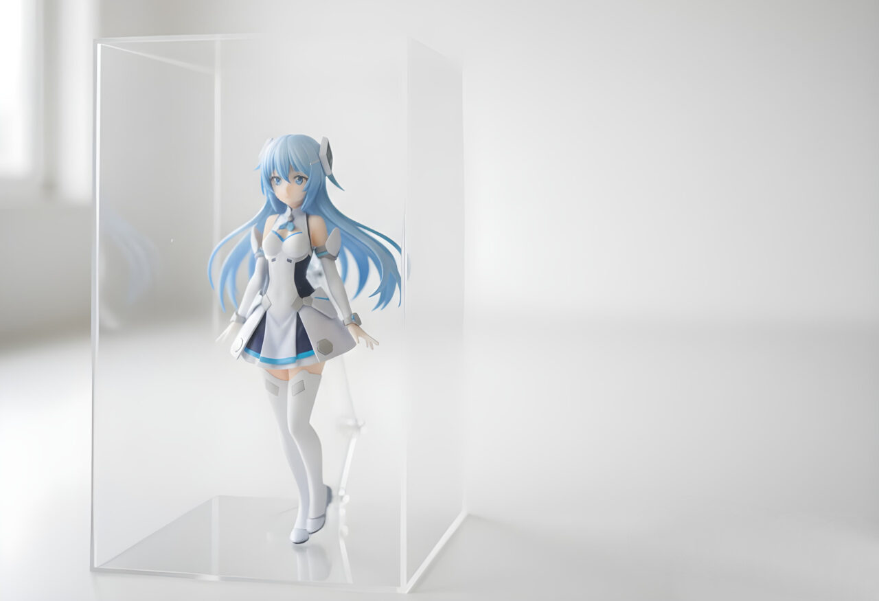大切なフィギュアは、紫外線をカットするアクリルケースに入れる。