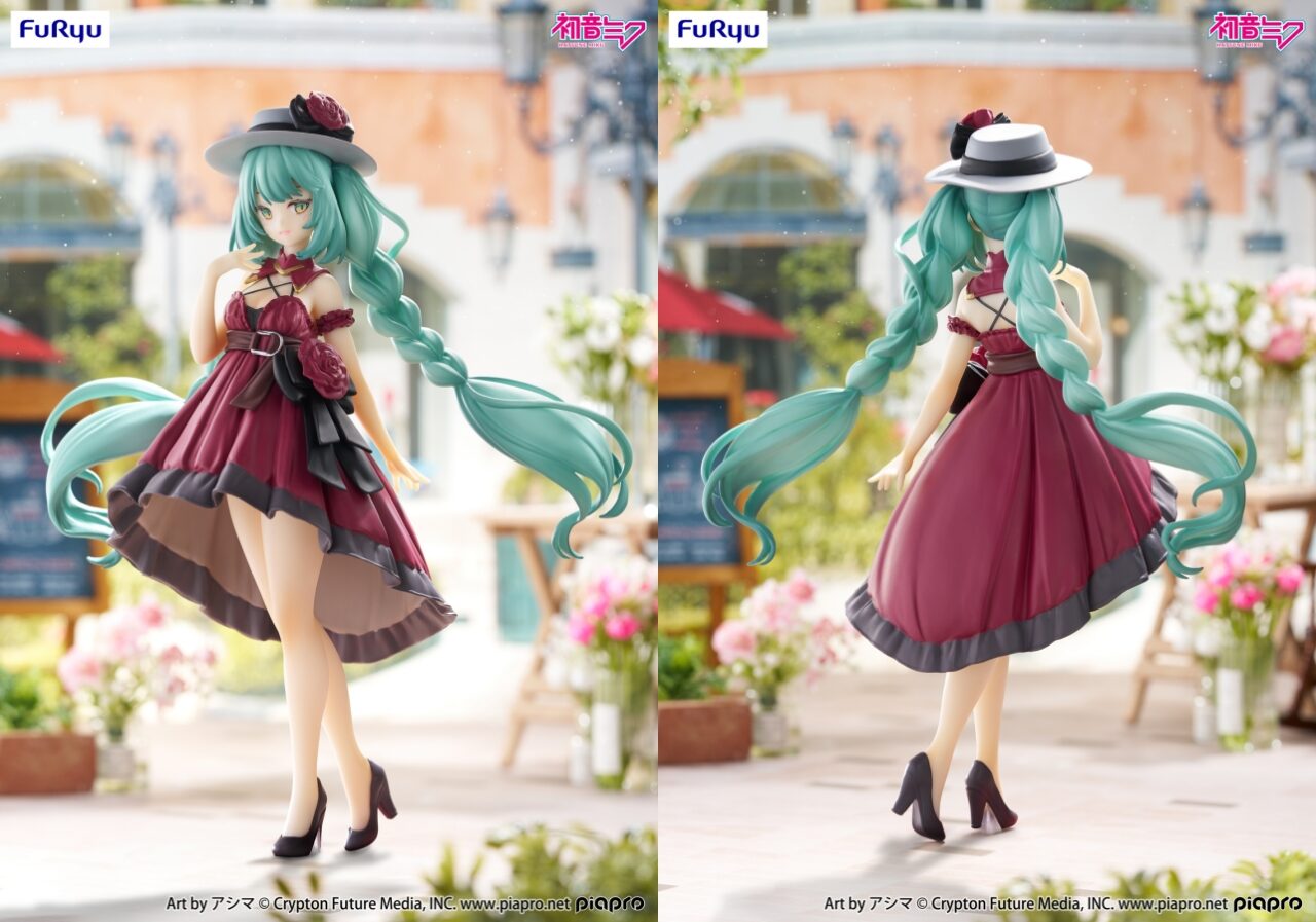 フリューより、イラストレーター・アシマ氏デザインの「初音ミク」が、シックなレッドカラーのドレス姿で再登場!