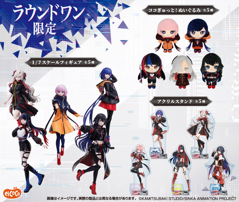 『神椿市建設中。』からはメインキャラクター全員が「1/7スケールフィギュア」で2025年7月に登場。ラウンドワン限定プライズとして、ぬいぐるみ・アクリルスタンドと一緒に展開されました。