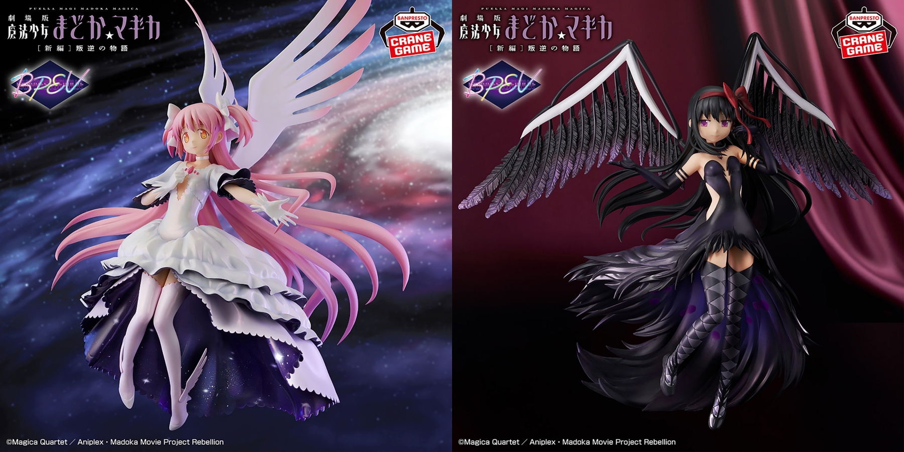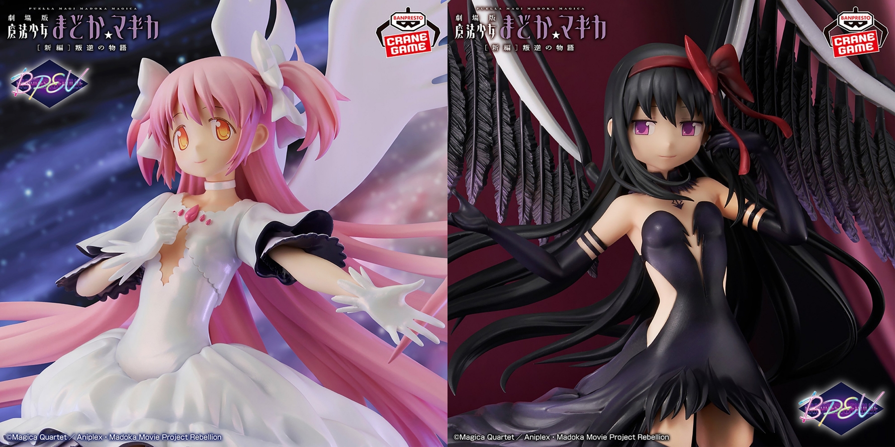 『魔法少女まどか☆マギカ』では、劇場版で印象深い「アルティメットまどか」と「悪魔ほむら」がBANPRESTO EVOLVEシリーズから展開。