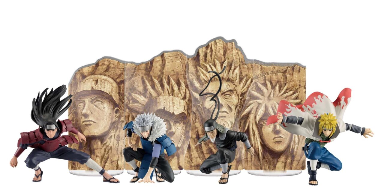 『NARUTO-ナルト-』では、口寄せ動物を背にした「うずまきナルト」「うちはサスケ」が展開。2025年には「千手柱間」など歴代火影が顔岩の前に集結するシーンの再現も予定されており、コレクション性の高いアイテムといえます。