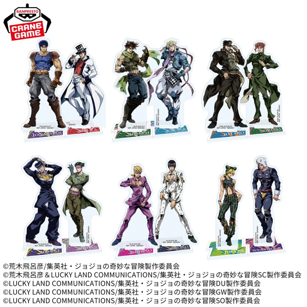 世界中で熱狂的な支持を集める大人気作品から、バンプレストより「ジョジョの奇妙な冒険」の魅力がたっぷり詰まったアクリルスタンドが展開されます。
