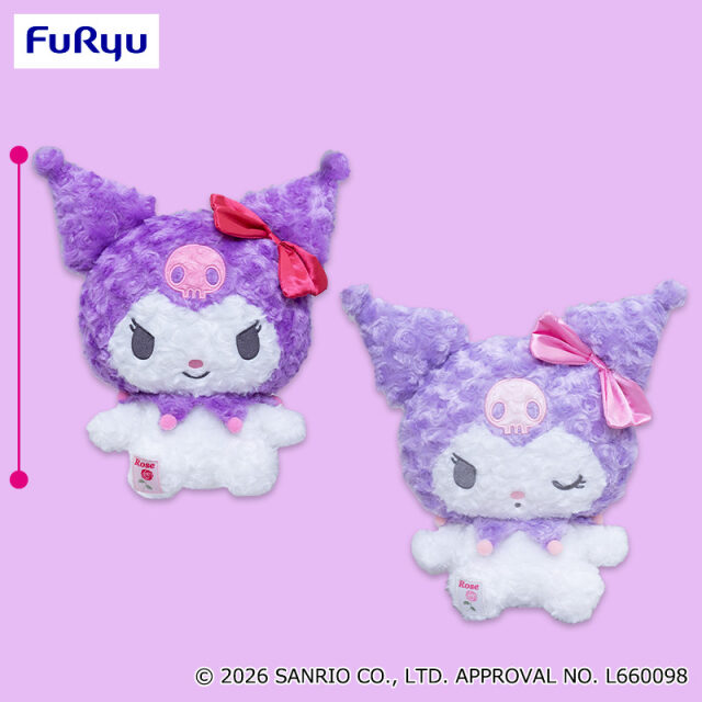 サンリオの大人気キャラクターであるクロミが、フリューの新作プライズとして展開予定です。今回は、バラの花びらのような質感が特徴のローズボア生地を使用した、豪華なBIGぬいぐるみの登場となります。