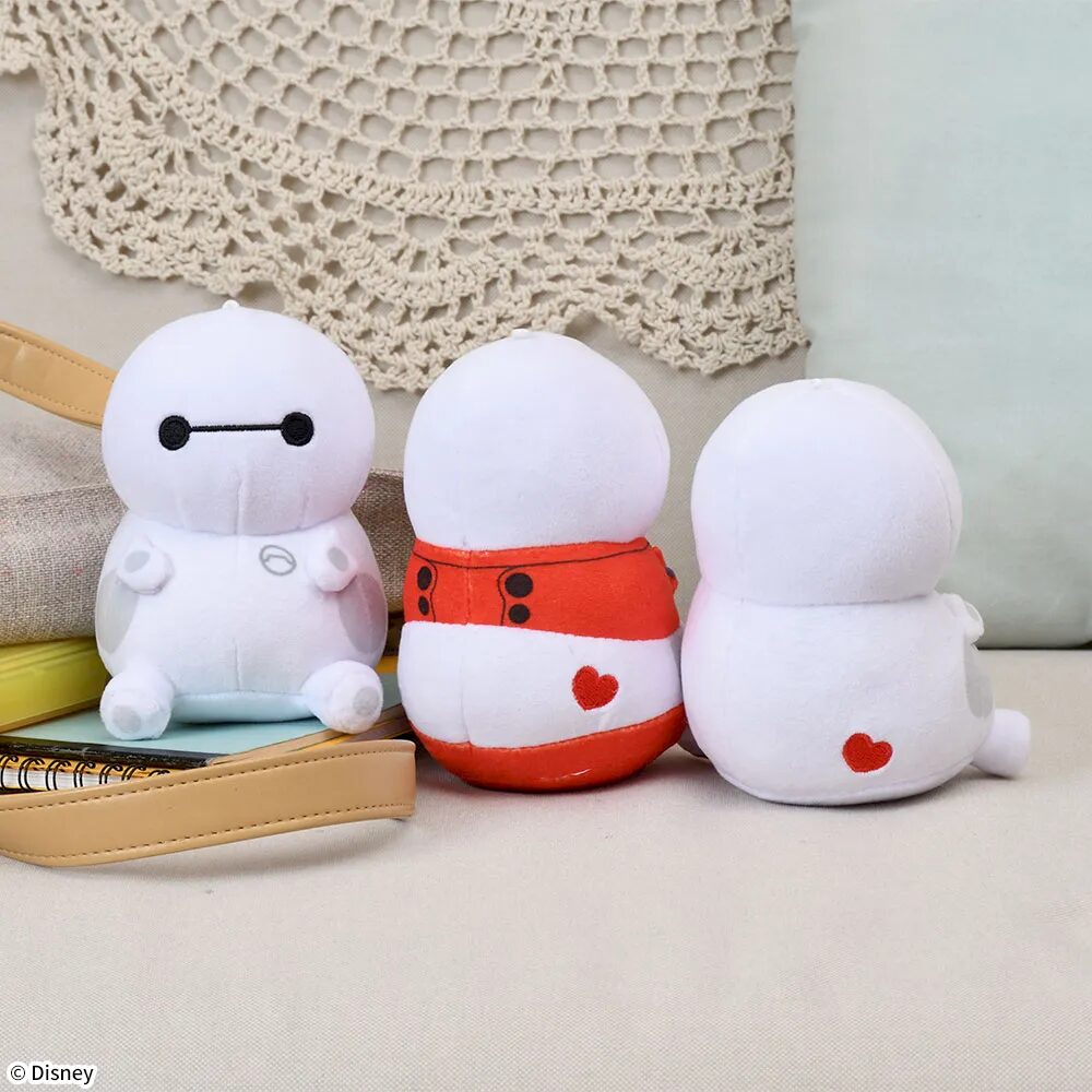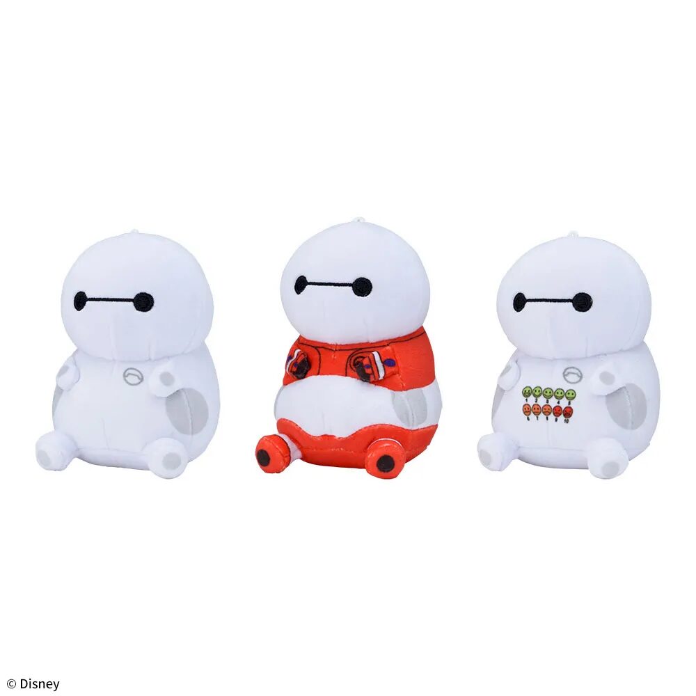 世界中で愛されるケアロボットのベイマックスから、大きさやデザインの異なる3種類のぬいぐるみが展開されます。