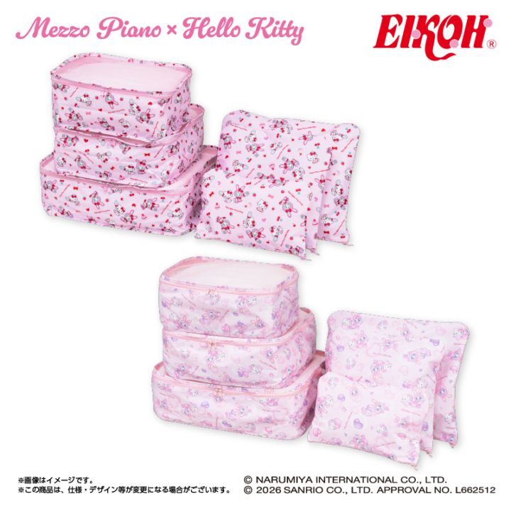 メゾピアノを象徴するパステル調のピンクカラーやキュートなリボンモチーフが、ハローキティの世界観と見事にマッチした仕上がりです。