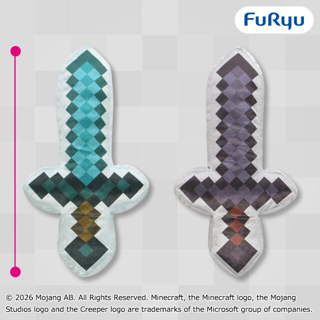 2つ目のアイテムは、マイクラでの過酷な冒険に欠かせない重要な装備をボリューム感たっぷりに立体化した「武器BIGぬいぐるみ」です。