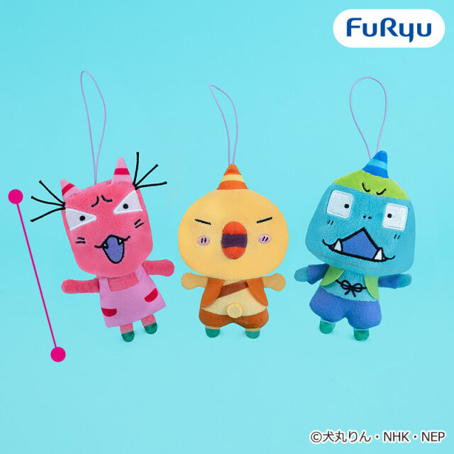 今回フリューから展開されるのは、おじゃる丸のシャクを狙う「子鬼トリオ」の3人。アオベエ、キスケ、アカネの愛嬌たっぷりな姿がギュッと詰め込まれたアイテムとなっています。
