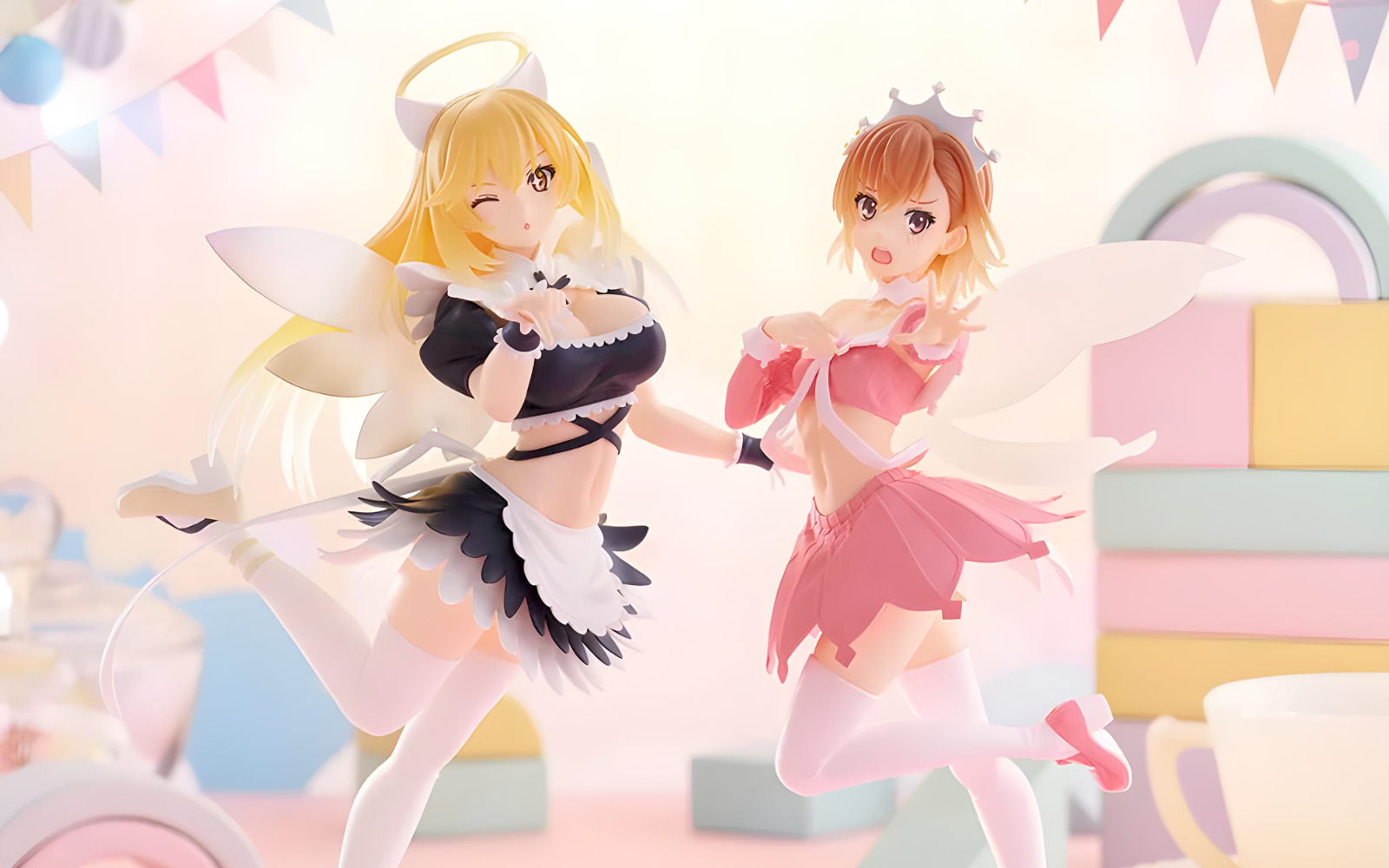 本作では、作中で存在を匂わせていた大精霊メイド衣装や堕天使メイド衣装を身に着けた「御坂美琴」「食蜂操祈」が登場。それぞれの表情とポージングにも注目です。