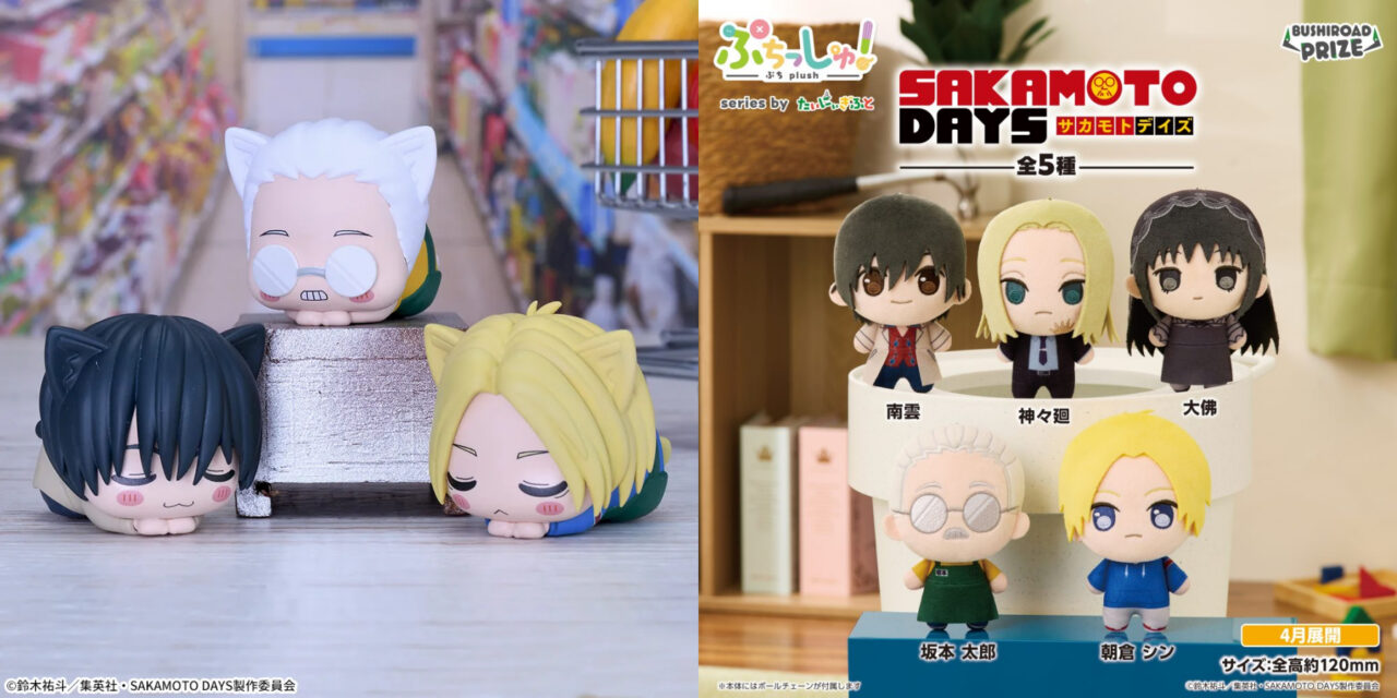 『SAKAMOTO DAYS』から展開されるプライズフィギュアや、プライズ景品のぬいぐるみ・グッズなどの最新情報を掲載。